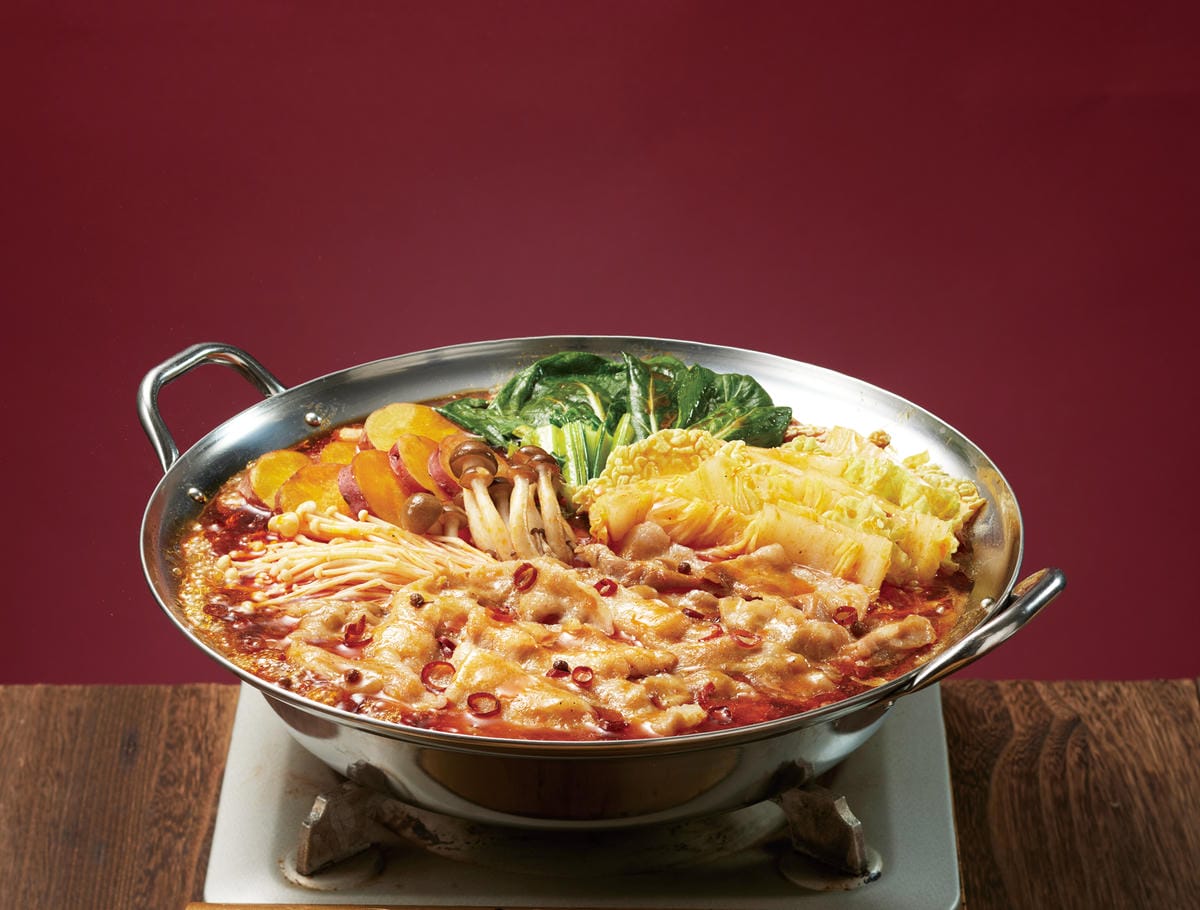 味の決め手は「自家製辛みそ」と「牛だし」で作る特製スープ!辛さは控えめで、ぷりっぷりの牛ホルモンの旨みを堪能できる人気のお鍋です。