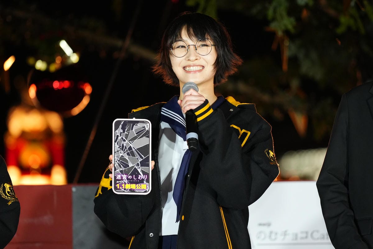 その後に⾏われた囲み取材では、「サンタさんにどんなプレゼントが欲しいか」と尋ねられたRIN は「映画『迷宮のしおり』が⼤ヒットしますように︕主題歌も世界に⽻ばたきますように︕いい⼦にしているので願いを叶えてくれるかなと思っております。」と、最後まで映画のヒットを願った。