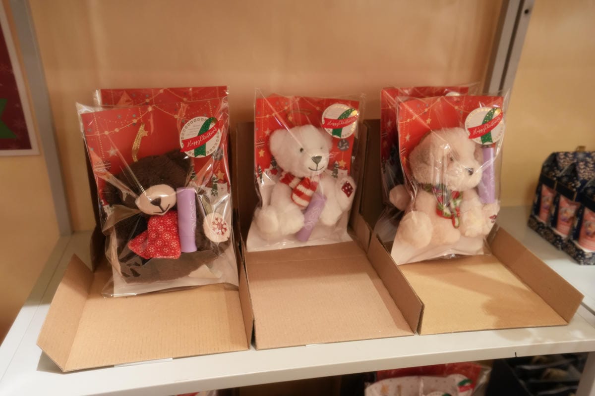 更に、クリスマスプレゼントやちょっとした送り物にもおすすめなアイテムが多数販売されており、私が購入したのはドイツコスメショップにて販売されている、ぬいぐるみとリップクリームがセットになっているギフトです。