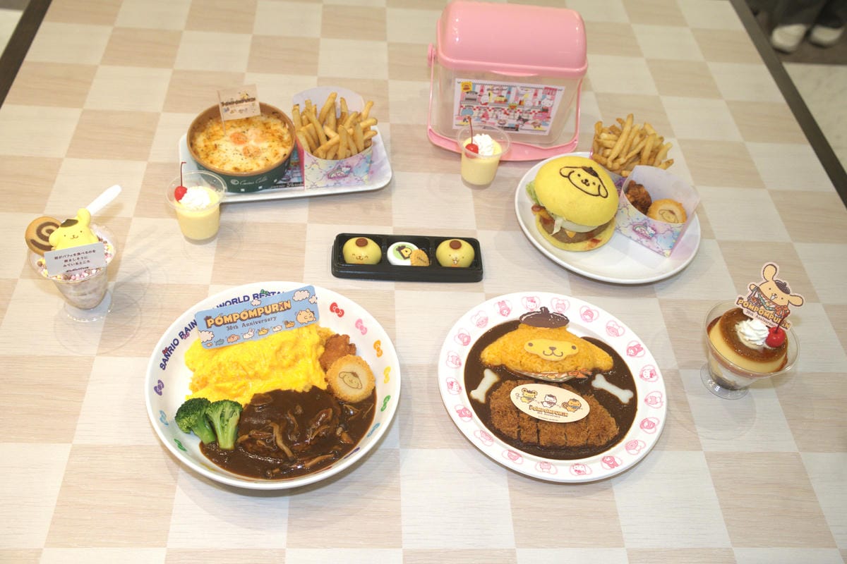 「POMPOMPURIN 30th Anniversary」のフードとグッズ