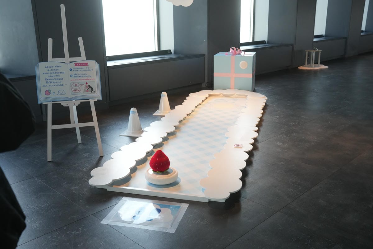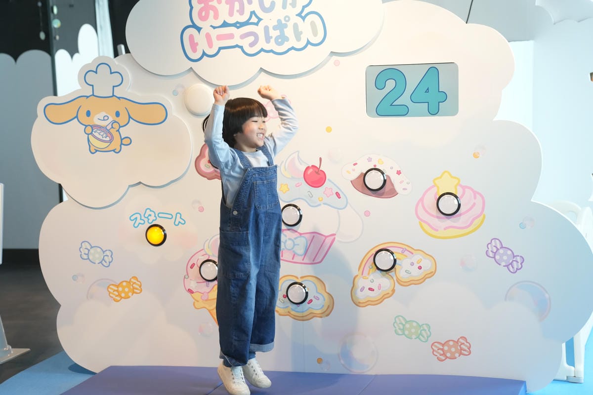 その後に広がるアクティビティエリアでは、シナモロールのお友だちの“みるく”と一緒にカーリングをしながらケーキを完成させたり、“カプチーノ”と点灯するボタンを早押しすることでお菓子を集めたり、楽しくからだを動かすことでパーティの準備を進めていきます。