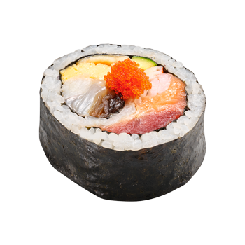 12種類の具材が使われている、一皿で旬の具材をたっぷり楽しむことができます。お店で手巻きして作っている、こだわりの逸品です。
