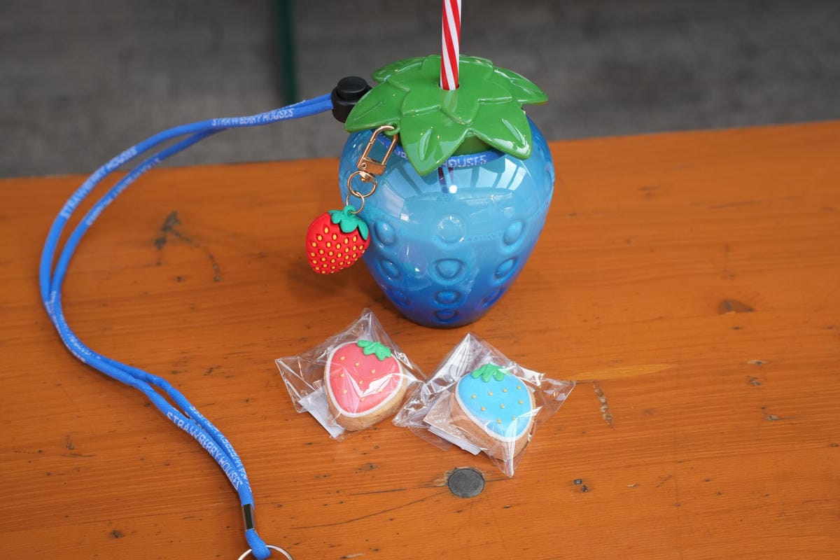 いちごミルク専門店 STRAWBERRY HOUSESでは、推しカラーに合わせて選べる容器のいちごミルクや、アイシングクッキーが販売されています。